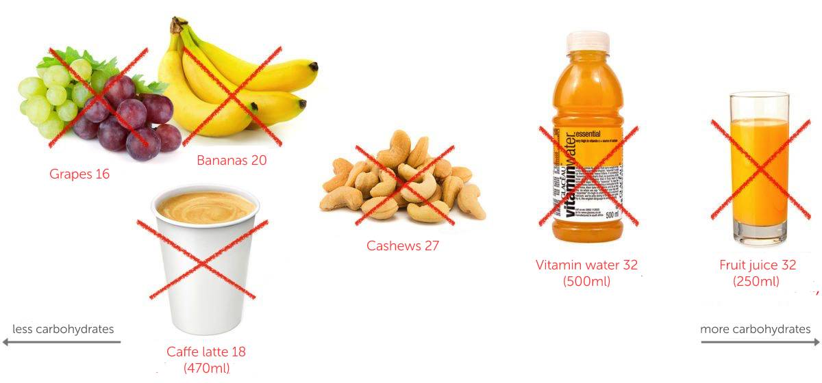 Fruits: These can be classified as natural sweets because they are high in sugar. Fruits aren’t as bad as juices, but they should still be avoided on a low-carbohydrate, raw diet. Fruit can be eaten in small amounts with a more liberal diet. Bananas and grapes have the highest sugar content of any fruit. See our website for a list of low-carb fruits that are allowed on a ketogenic diet -> Low-carb fruits allowed on a ketogenic diet