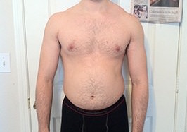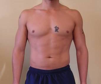 This is the most common percentage for men. The optical separation of muscle from fat ceases to occur. There is virtually no striation or vascularization in any muscle groups. Usually some fat is deposited in the abdominal area, but it is not yet rounded.